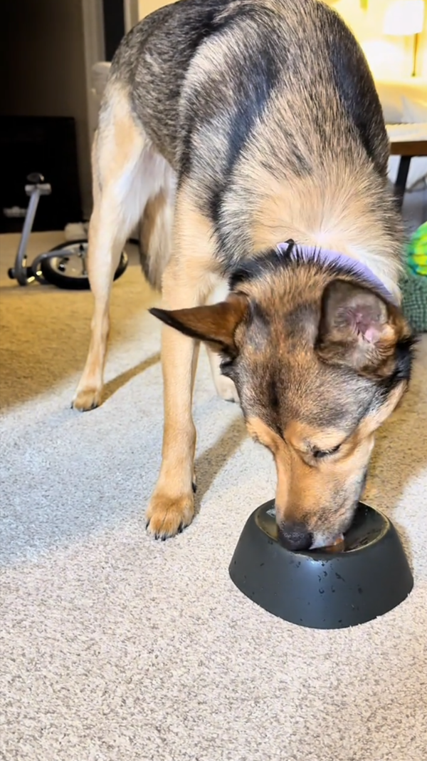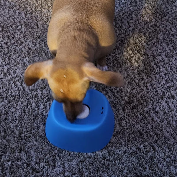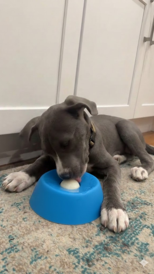 The rotating ball keeps them licking for 30-60 minutes long enough for anxiety to melt and calm to settle in. For both of you.